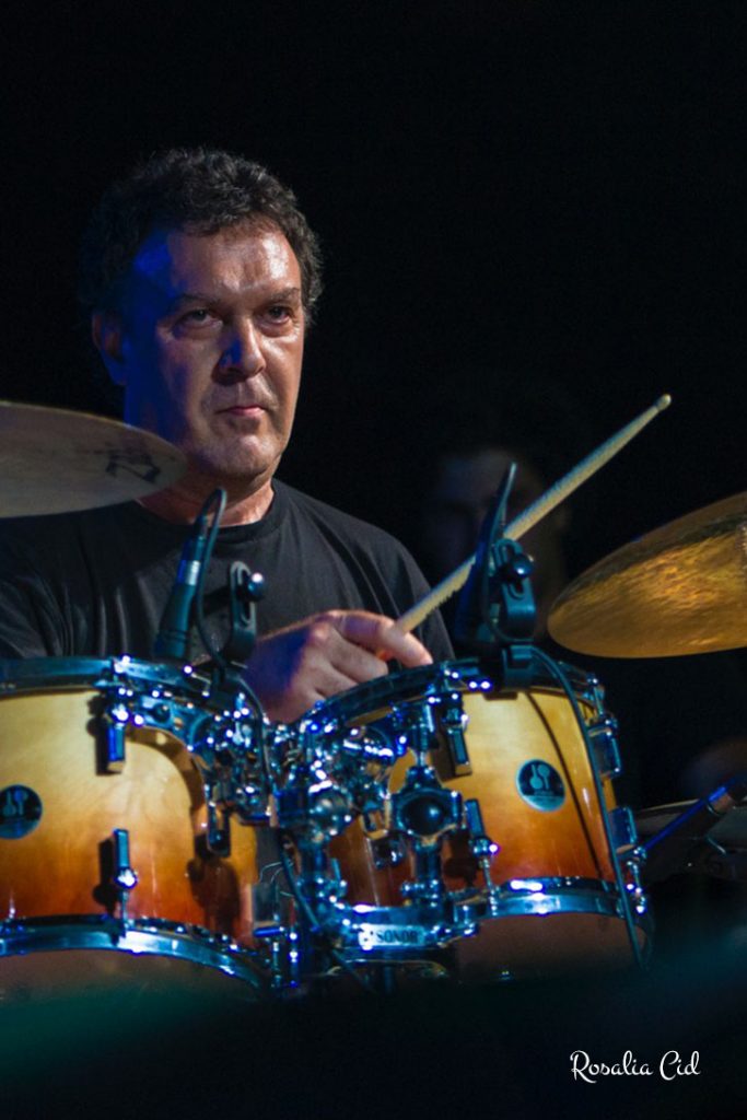 Baterista y multinstrumentista, Tino Di Geraldo (Tolouse, 1960) es el tercer vértice de un triángulo que lidera democráticamente junto a Jorge Pardo y Carles Benavent. Di Geraldo, asturiano y madrileño de adopción, le pones cualquier melodía y te saca una sinfonía de ritmos, ya sea con la batería o percusiones varias. Su trayectoria efectivamente se ha desarrollado con todo tipo de artistas, desde cantautores como Aute, o Pablo Guerrero a bandas de pop-rock, hoy de culto, como Golpes Bajos o Luz Casal. Y en el medio, lo mejor del flamenco y el jazz, como todos los participantes en este recital.